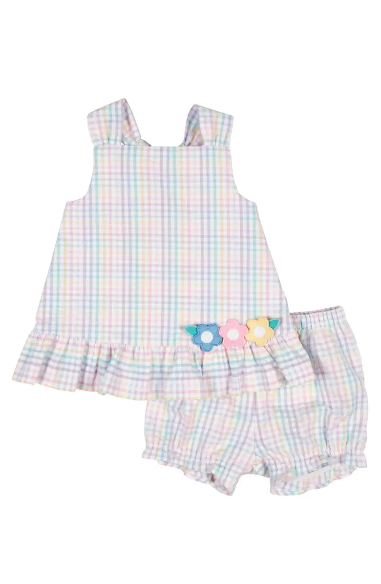 Plaid Seersucker Dress/Bloomer w/Flowers