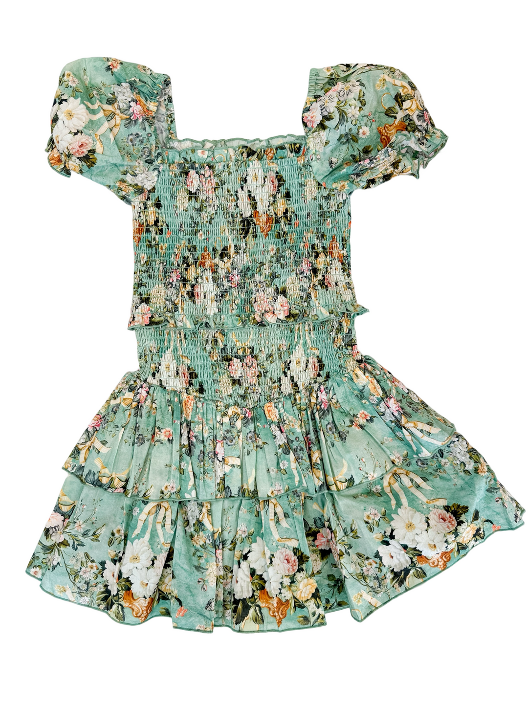 White Daygown w/Scallop Trim-Puff Sleeves Bows