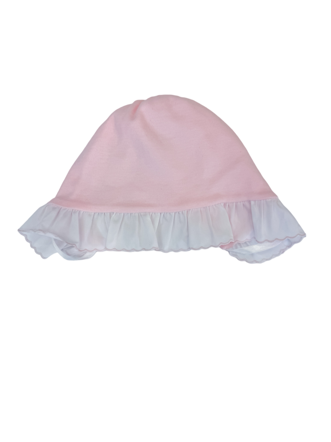 Knit Bonnet w/White Ruffle-Scallop Trim