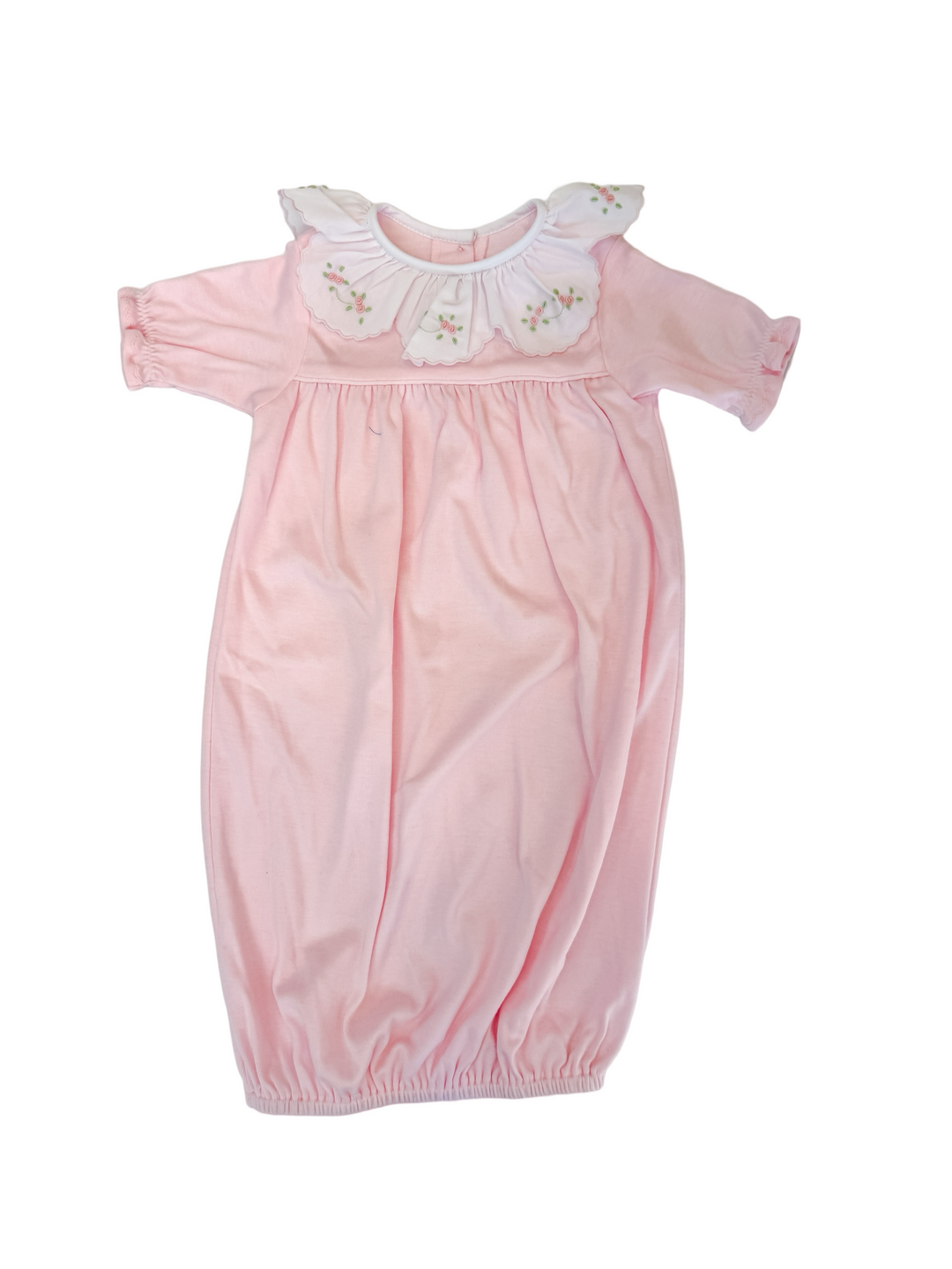 Knit Saque Gown w/Ruffle Collar-Scallop Trim