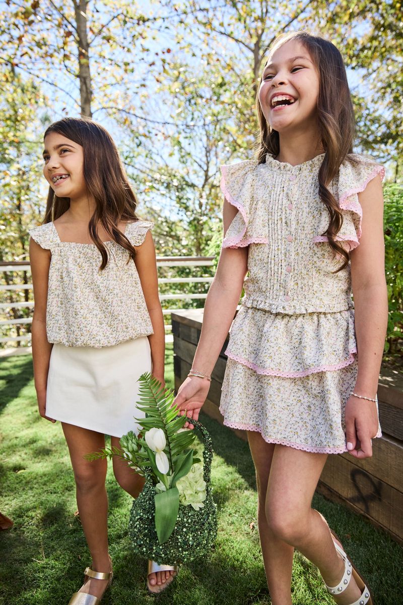 Feminine with a refined feel, this cream floral skort brings a more elevated touch to everyday dressing. Designed with softly structured tiered layers and delicate contrast trim, it offers graceful movement without feeling overly fussy.